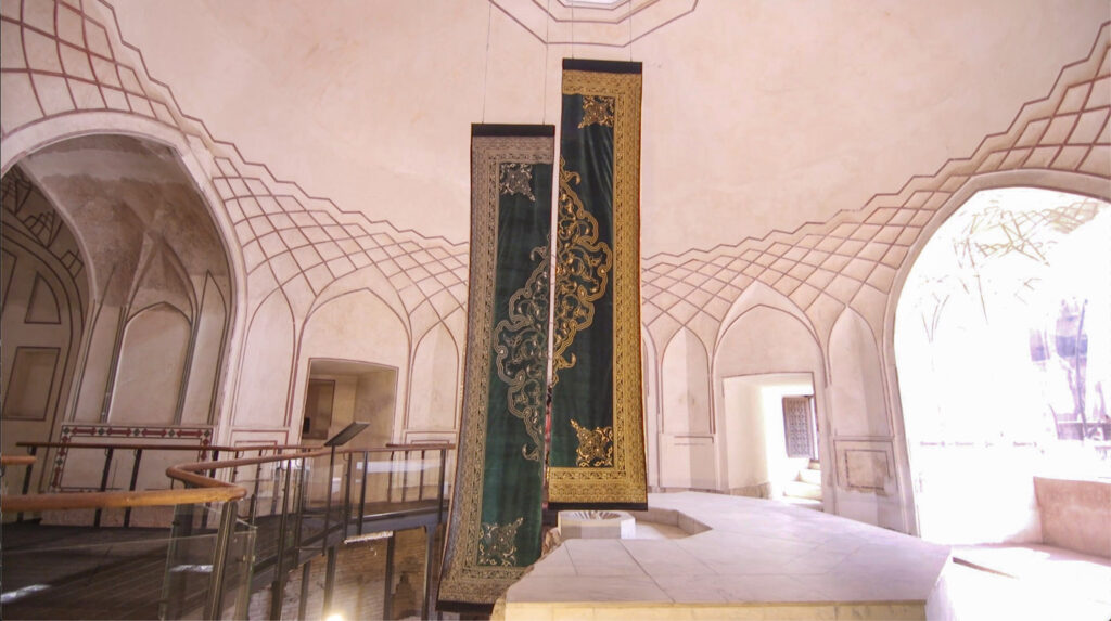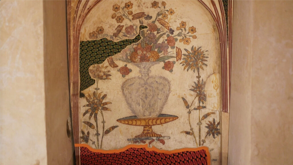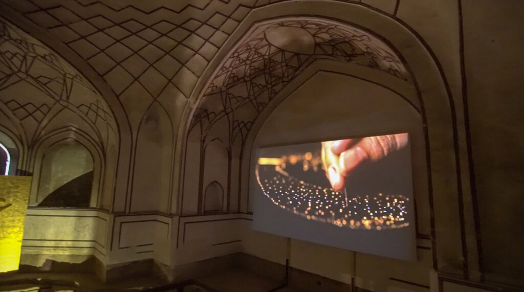 Aisha Khalid is an artist, curator and an art educationist. Her site-specific installation at the Shahi Hammam, Lahore consisted of gouache on paper, mirrors and a textile piece that incorporated gold-plated steel pins.