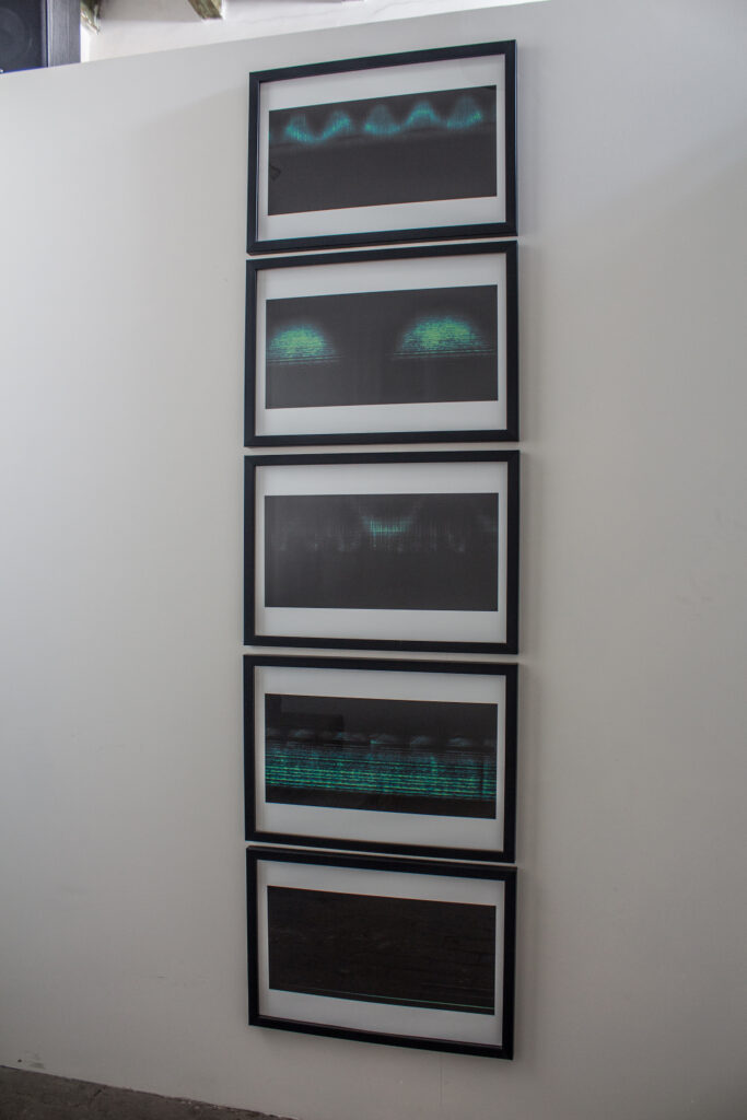 Visualizing Sound is a synesthetic transposition from sound to visual effects and from visual reception to an auditory experience. Boyle uses digital technology to ‘hear’ an image and ‘see’ sounds, to simulate synesthetic sensations. Using an image-based sound editor, synthesizer and processor in conjunction with Deep Dream, (an experimental computer vision program created by Google) to generate images of sounds that lie outside of human audible range and create soundscapes of images that are not possible to view through the naked eye.  The finalized image and sound installation create an immersive audio-visual experience for the viewer, allowing the viewer to feel sensation that would not be otherwise possible.