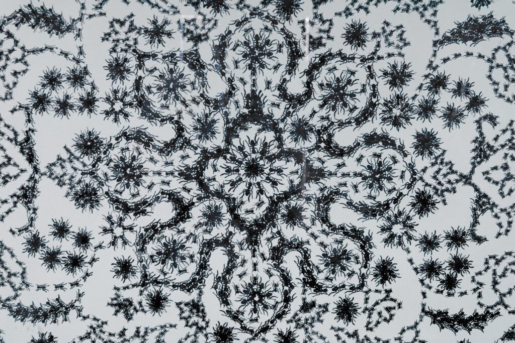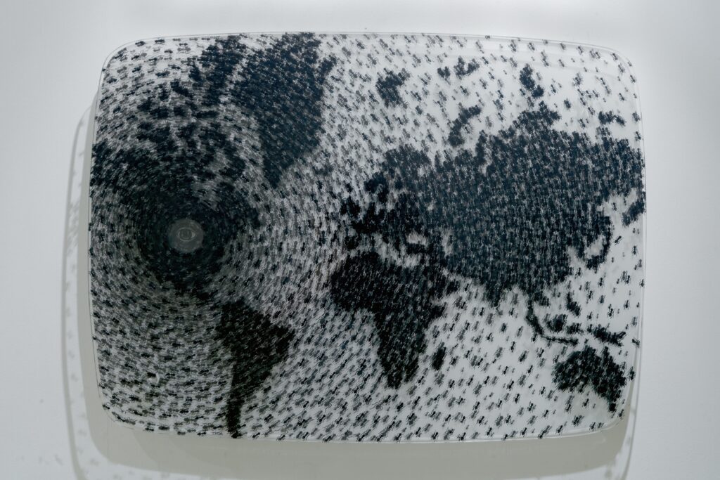 Hand stamping with ink on composite layers of acrylic sheets, 26.5 x 19.5 inches (67 x 50 cm)