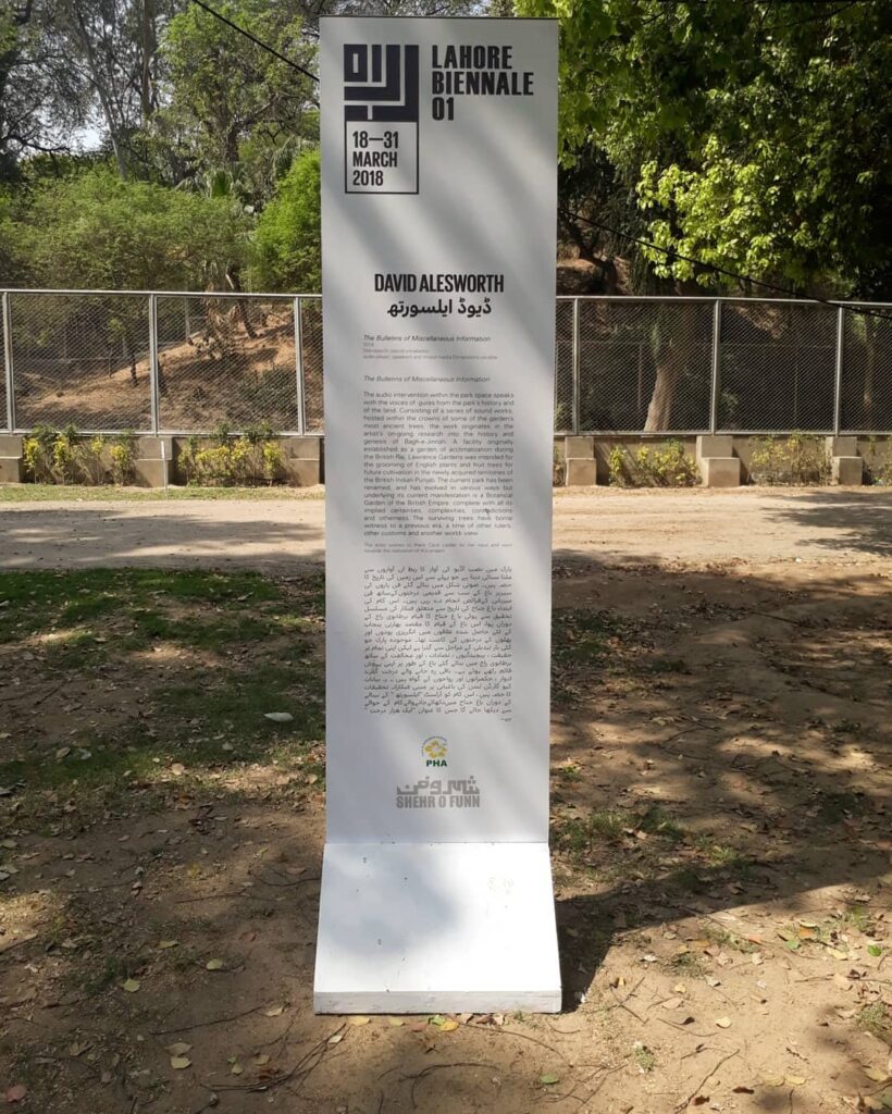 For LB01, the artist’s audio intervention within the park space speaks with the voices of figures from the park’s history and of the land. Consisting of a series of sound works, hosted within the crowns of some of the garden’s most ancient trees, the work originates in the artist’s on-going research into the history and genesis of Bagh-e-Jinnah. A facility originally established as a garden of acclimatization during the British Raj, Lawrence Gardens was intended for the grooming of English plants and fruit trees for future cultivation in the newly acquired territories of the British Indian Punjab. The current park has been renamed, and has evolved in various ways but underlying its current manifestation is a Botanical Garden of the British Empire, complete with all its implied certainties, complexities, contradictions and otherness. The surviving trees have borne witness to a previous era, a time of other rulers, other customs and another world-view.
