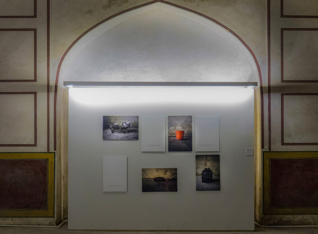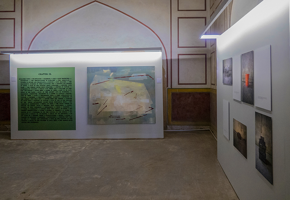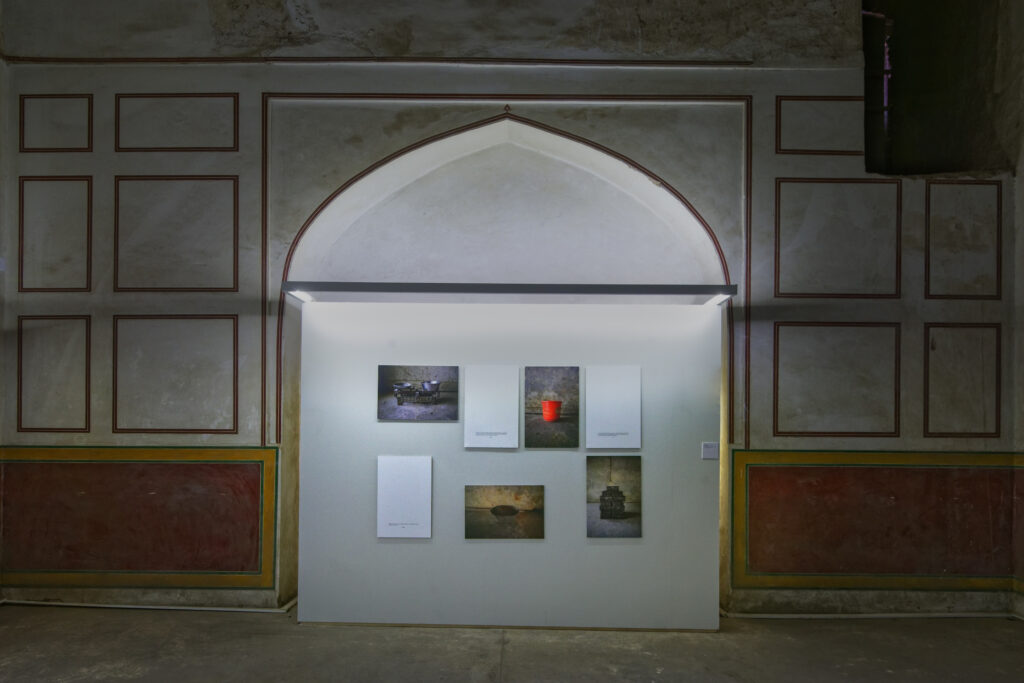 For LB01, an installation by the artist comprises of a textile print, sculpture, photographs, letterpress texts and brick dust. This is a work in perpetual progress based on conversations between a local bread- maker and bread-seller, Karamatullah and the artist, during the years 2010- 2015. Overall, the work captures moments in the life of the bread- seller whose livelihood succumbs to the pressures of the market and other institutional forces. Thus each element in the installation plays a role in telling a story, moving between fact and fiction, reflecting the vulnerability of the city’s inhabitants, their resilience and resistance in the face of power structures, exploitation and brutality, belief systems, exclusions, the hope and horror of human ambition and economic progress. The images speak of the simultaneity and compression of time; a utopia and dystopia, obliterating and inaugurating at once, commenting on the city’s present and past. The brick dust adheres to our feet as we walk through the installation, implicating us all, as the endangered ones and as those who have immunity, giving us equal agency, insisting we perform our roles to direct the future we live in today.