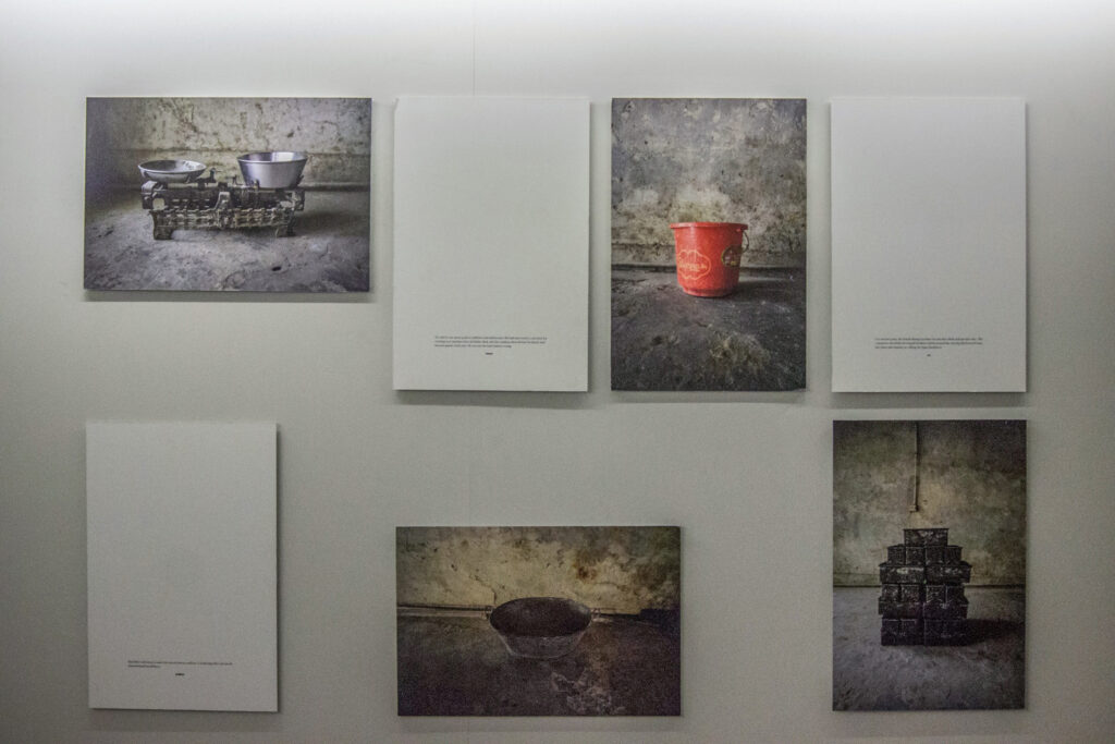 Textile print, sculpture, photographs, letterpress texts and brick dust