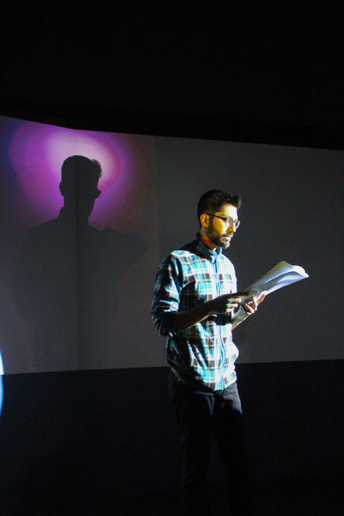 ل بی ۰۱ میں پیش کردا کام، دی ابزرویٹری، میں راوی نے انڈیا ویدر ریویو (۱۹۳۹) سے پورے برطانوی ہندوستان میں طوفانوں اور افسردگیوں کے بارے میں موسم کی رپورٹس کی آواز دی۔ منورہ جزیرے پر منقطع آبزرویٹری عمارت کی موجودہ زوال اور بربادی پر نقشہ بندی کرتے وقت یہ تاریخی موسمی رپورٹ ایک مختلف لہجہ اختیار کرتی ہے۔ اس کی خصوصیت عجیب مباشرت ہے. یہ امپیریل میپنگ اور روزمرہ کی زندگی کی حقیقت کے درمیان اختلاف کی ایک مثال ہے۔