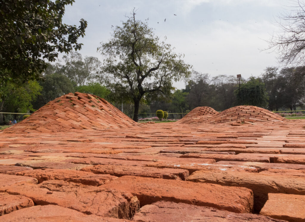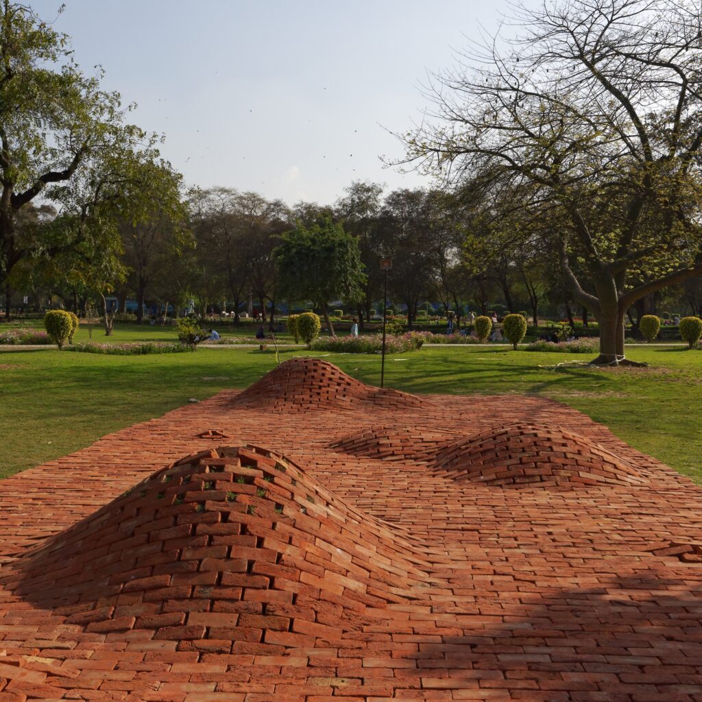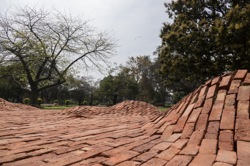 For LB01 the artist created a site-specific installation at Bagh-e-Jinnah, which employed bricks that bear traces of their earlier use from previously inhabited and demolished buildings. The bricks salvaged from temporary constructions bring to the garden varied experiences of constructions inhabited and demolished into the garden, returning the damaged baked clay back to a state of nature.