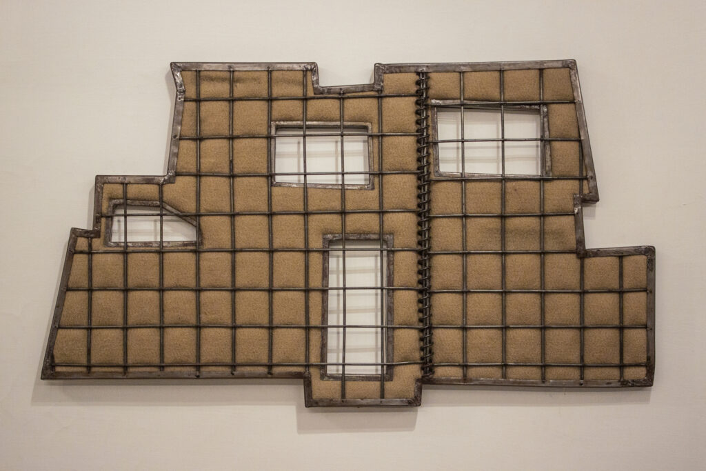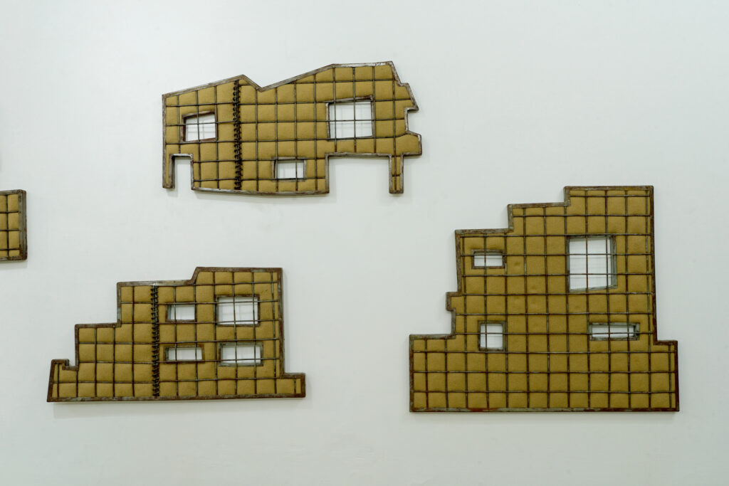 Nusrat’s work transpires from the energy found in the urban metropolis of Karachi. The artist’s sculptures, drawings and collages indicate her capacity to understand unusual materials, which are incorporated in her body of work. Exhibited at LB01, Domestic Elevation is a continuing investigation into the changing face of the city–through measures of policing, securitization and urban regulation–manifested in the barricades and barriers that have come to form a kind of architecture of Karachi, this ongoing series of proposals attempts to formulate an integrated architecture of the city through new possible configurations of urban dwelling and structural formations.