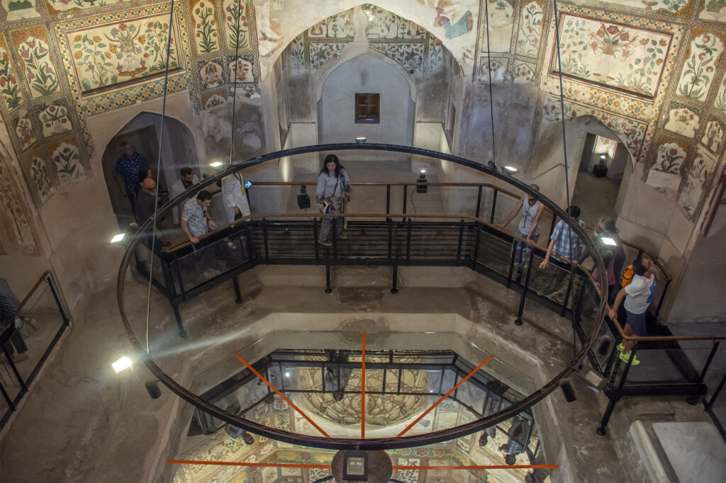 The 17th century Shahi Hammam (Royal Baths) fell into disuse during the decline and fall of the Mughal Empire. The 1,000 square meter complex was recently restored and conserved over two years. These interventions include the exposure, conservation and display of the original waterworks, drainage and heating networks as well as the historic floor level, restoration of the original entrance, internal chambers and architectural features including provisions for internal and external illumination. The original frescoes, dating from the Mughal period, were also conserved.