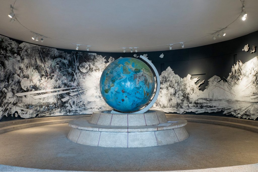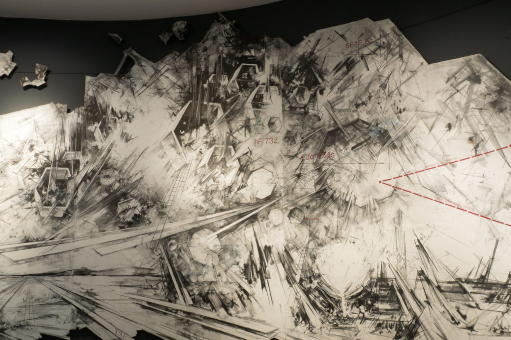 (ڈرائنگ انسٹالیشن، لمبائی: ۹۲’، اونچائی: ۱۲’، انک اون کینوس (گراؤنڈ فلور