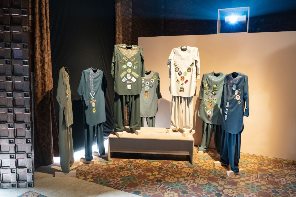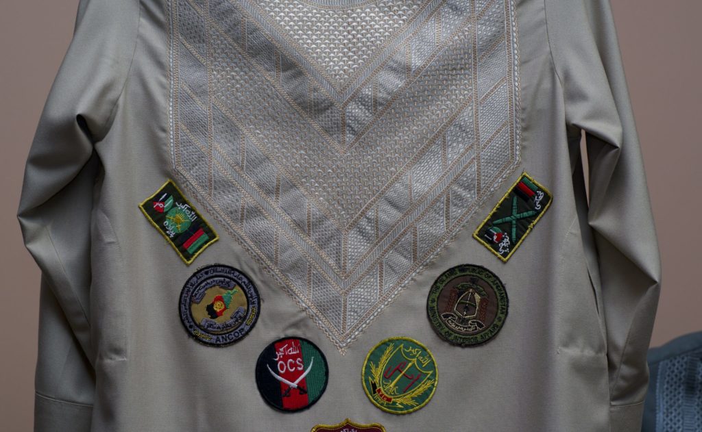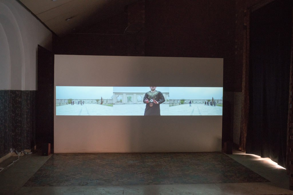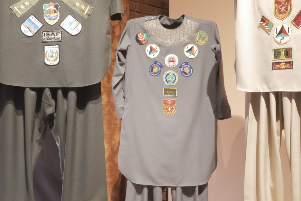 Performance-based video installation (traditional Afghan men’s clothing with military insignias), duration: 8 min 34 secs