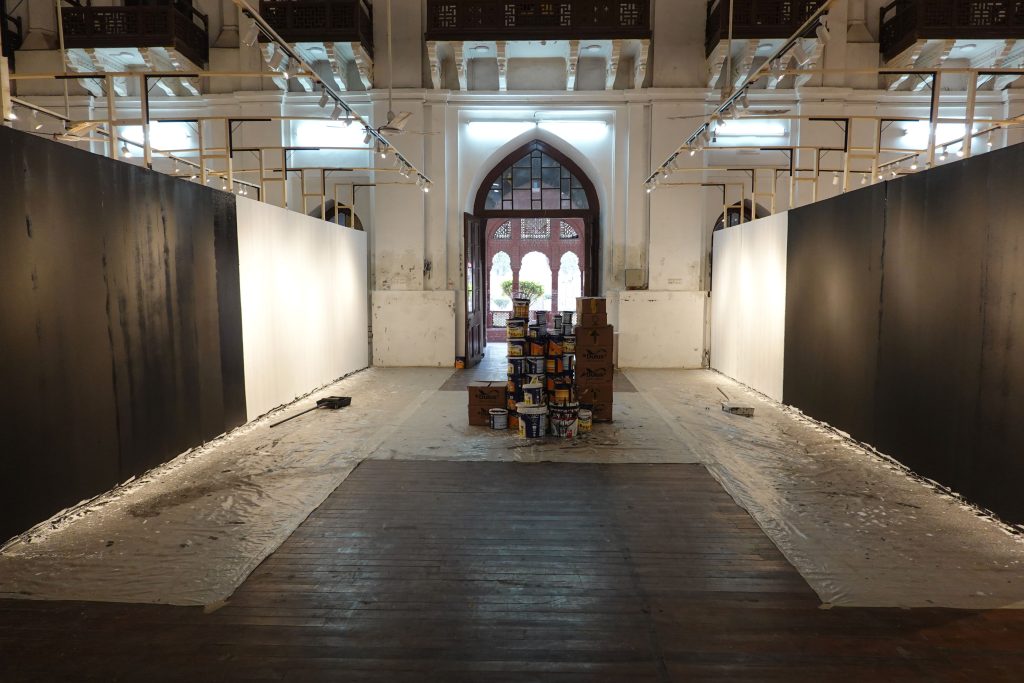 ایک زندگی (بلیک اینڈ وائٹ) کے فنی مظاہرے کے ہدایت نامے سے نمائش کے کھلنے سے پہلے جگہ، رسد اور اوزاروں کو تیار کرنا اور پینٹروں کی شفٹوں کو نظم وضبط مںی النا ضروری ہوتا ہے۔ نمائش کھلتے وقت جگہ آدھی سفید اور آدھی سیاہ ہونی چاہیے۔ پہلے سے لیپ شدہ نمائش کی دیواروں پر سیاہ پینٹ کی ایک تہہ ہونی چاہیے اور اس پر ایک سفید پینٹ کی تہہ ایسے ہو کہ وہ دیواروں کی کل لمبائی کے نصف پر آتی ہو۔ یوں وہ جگہ (آدھی سیاہ اور آدھی سفید( کام کے لیے تیار ہے۔ نمائش کھلنے کی گھڑی مںی، دو رنگ کار کام کرنا شروع کر دیں (شائقین کے وہاں پر موجود ہونے یا نہ ہونے سے کوئی فرق نہںی پڑتا(۔ عام طور پر، پینٹ کاری کی سمت گھڑی وار ہونی چاہیے لیکن اسے الٹے گھڑی وار ھبی سرانجام دیا جا سکتا ہے۔ جب سمت متعین ہو جائے، عمل کے پورے دورانیے کے لیے اسی پر رہا جائے۔ پینٹ کار کو جھٹ پٹ نہںی کرنی اور دیواروں کو ڈھکنے مںی ممکن ترین حد تک اچھا کام کرنا چاہیے۔ وہ کام کے دوران آنے والوں سے بات کر سکتے ہںی۔ کام کے پورے دورانیے مںی یہ بات ذہن نشین رہے کہ نصف جگہ سفید ہونی چاہیے اور نصف سیاہ ہو – یہ بنیادی شرط ہے۔۔۔