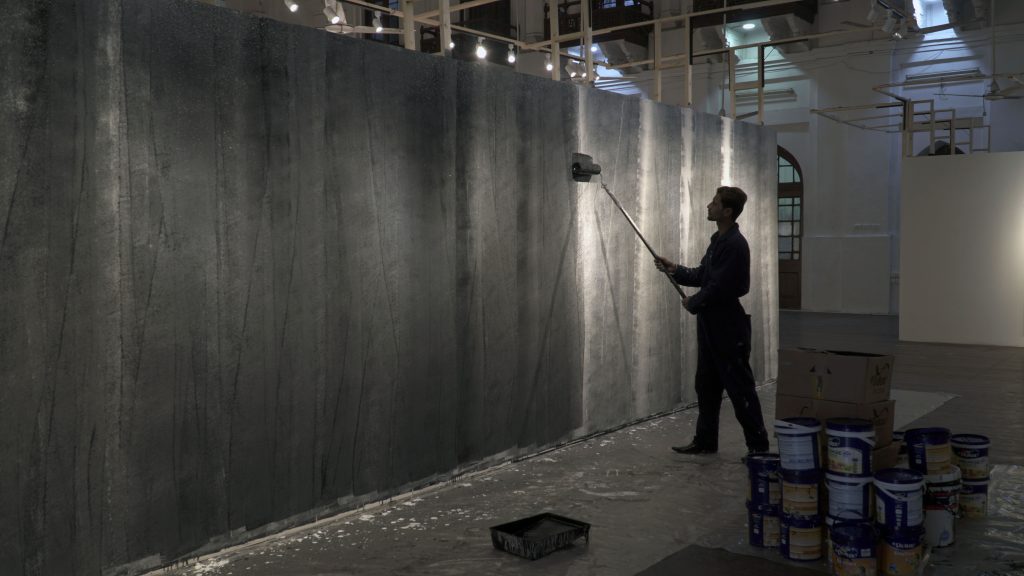 Nedko Solakov is a multimedia artist working in diverse fields of practice: drawing, painting, installation, video, and performance. His observations generate non-linear storylines that raise profound questions about truth and contradiction. His work for LB02 is a riveting display of process in which two workers/painters constantly repaint the walls of an exhibition space in black and white for the entire duration of the exhibition, day after day.