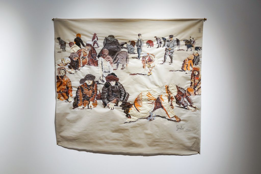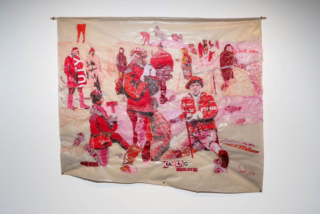 ‘In the Residual Memory project, I investigate certain periods of history recorded in rare, residual photos and video documents of historical traumas. While I am depicting these scenes in a collage of residual materials (plastic bags), a cathartic exercise of contemplation, purification and acceptance takes place. For a long time, information about these periods of history of Kazakhstan was hidden at not only the official level, but also people themselves preferred not to remember the trauma of the past. My work tries to remember and reflect on these times to help understand ourselves better.’ Saule Suleimenova