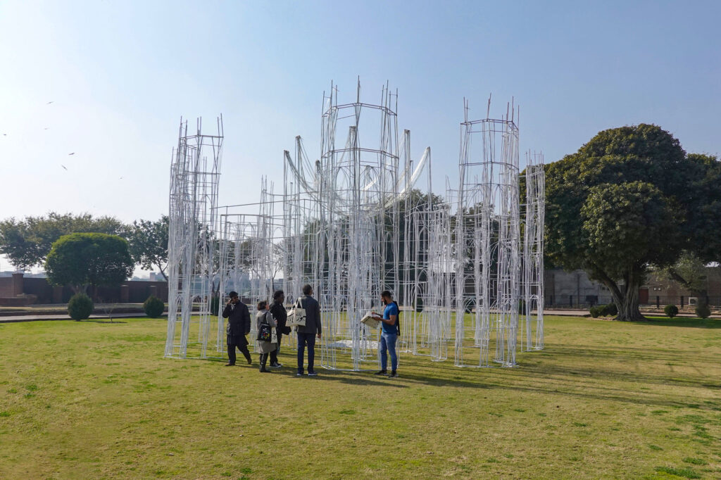 Local and international artists and curators, public figures and patrons gathered with art lovers over the weekend (January 26-28, 2020) to open the second edition of the Lahore Biennale (LB02) on January 26, 2020. The inauguration ceremony took place amidst majestic surroundings in Hazuri Bagh, a garden in the city’s historic fort. Newly commissioned projects were unveiled alongside important works of contemporary art: Diana Al Hadid’s remarkable public sculpture in the gardens of Divan-e-Aam, inspired by the popular legend of Anarkali; installations by diaspora artists Hajra Waheed, Haroon Mirza and Khadim Ali and paintings by Ethiopian artists created in Lahore. In the Summer Palace, dozens of participating artists and curators visiting Pakistan for the first time mingled with the public as they viewed Wael Shawky’s Cabaret Crusades, exhibited alongside sculptures by Dagestan’s Taus Makhacheva. Chief guest Dr. Arif Alvi, the President of Pakistan, thanked Hoor Al Qasimi, President and Director of the Sharjah Art Foundation, for her efforts in curating the Biennale.