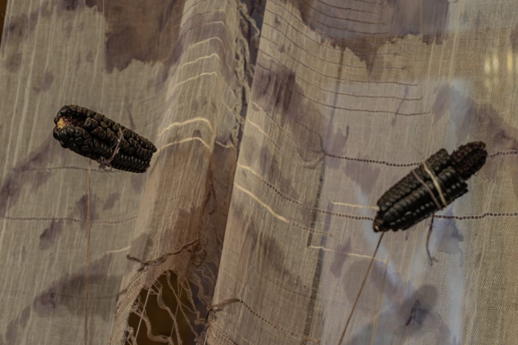 سوئیوں اور جامنی مکئی پر مشتمل کپڑے کی تنصیب