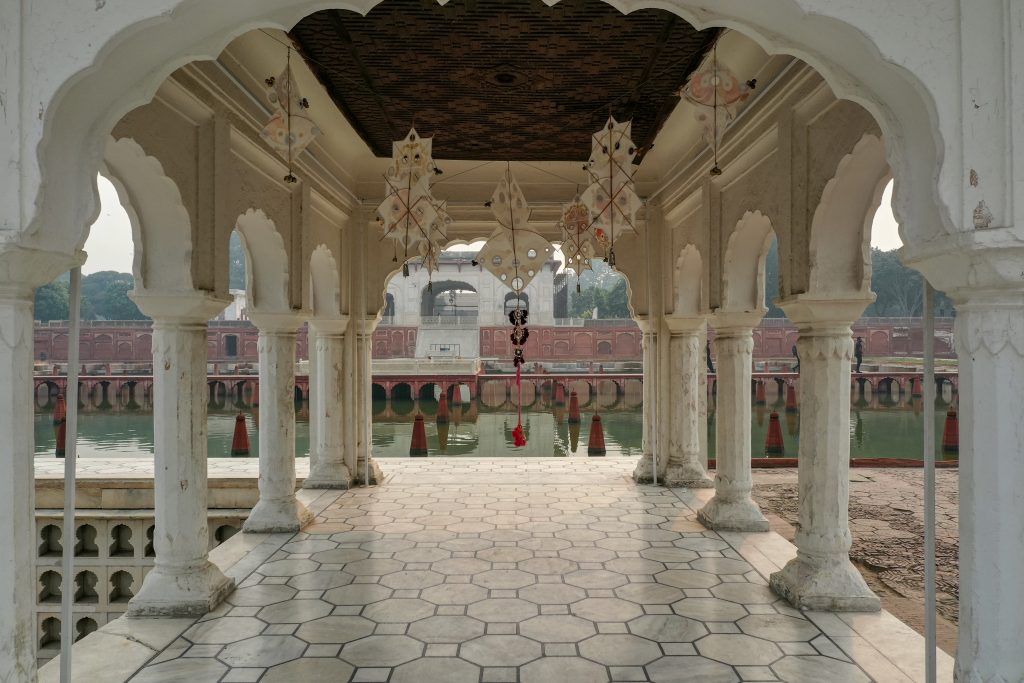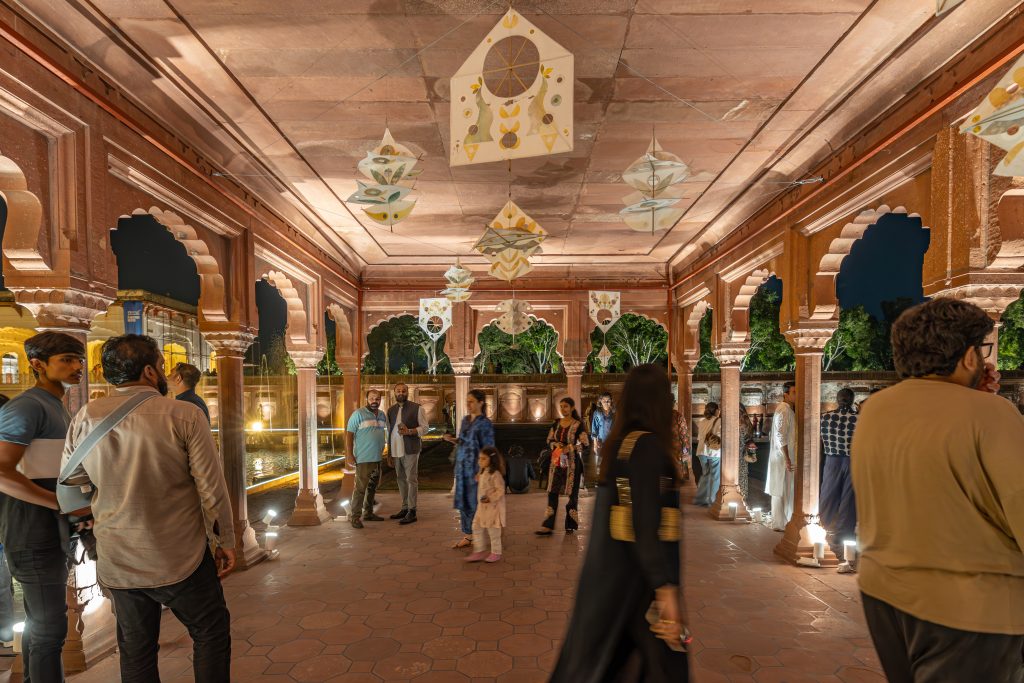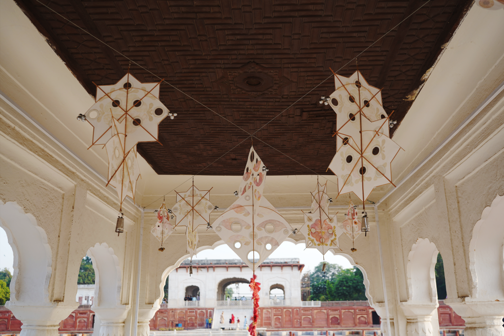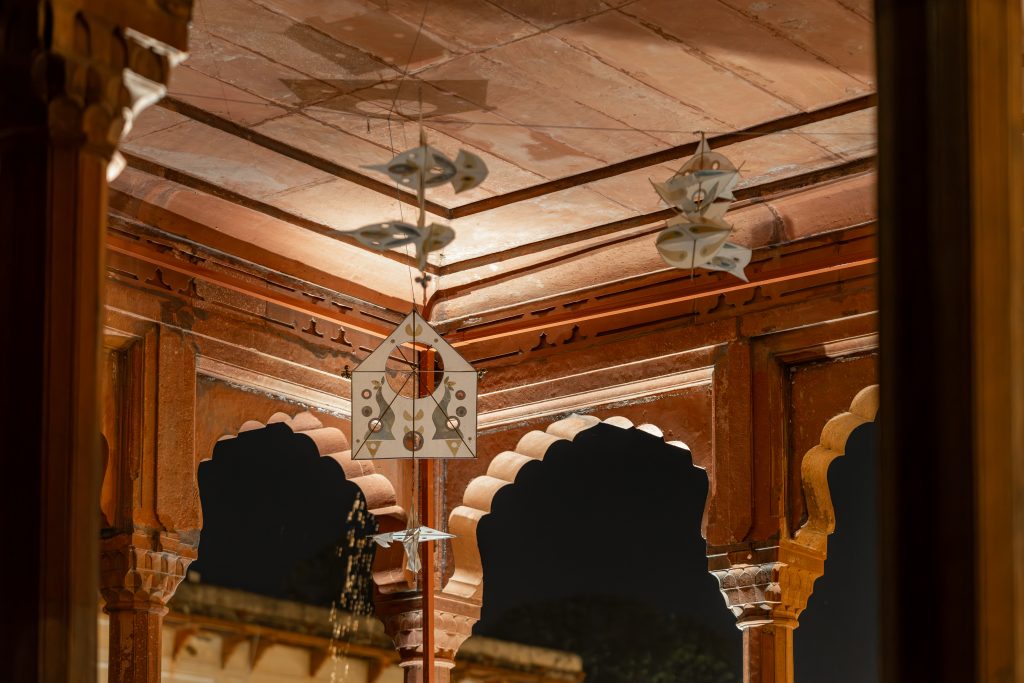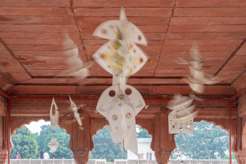 Spring Sailors – Six Synecologies Aloft responds to both experiences in the city by installing six sets of paper sculptures inspired by Lahori kite designs in the Aiwan or grand hall at the Shalimar Gardens. The kites’ geometry and arrangement harmonize with the Gardens’ precise symmetries, while their sails flutter to the breeze of the air current wafting through the hall’s open architecture, which overlooks hundreds of fountains and the grounds, which originally hosted an abundance of flowers and fruit trees meant to provide a cooling respite from the intense summer heat. In this way, the work draws attention to the celebration of geometry that is a touchstone of Islamic aesthetics, but also to vernacular and local adaptations to the environment, including garden designs and water features that provide forms of passive cooling.