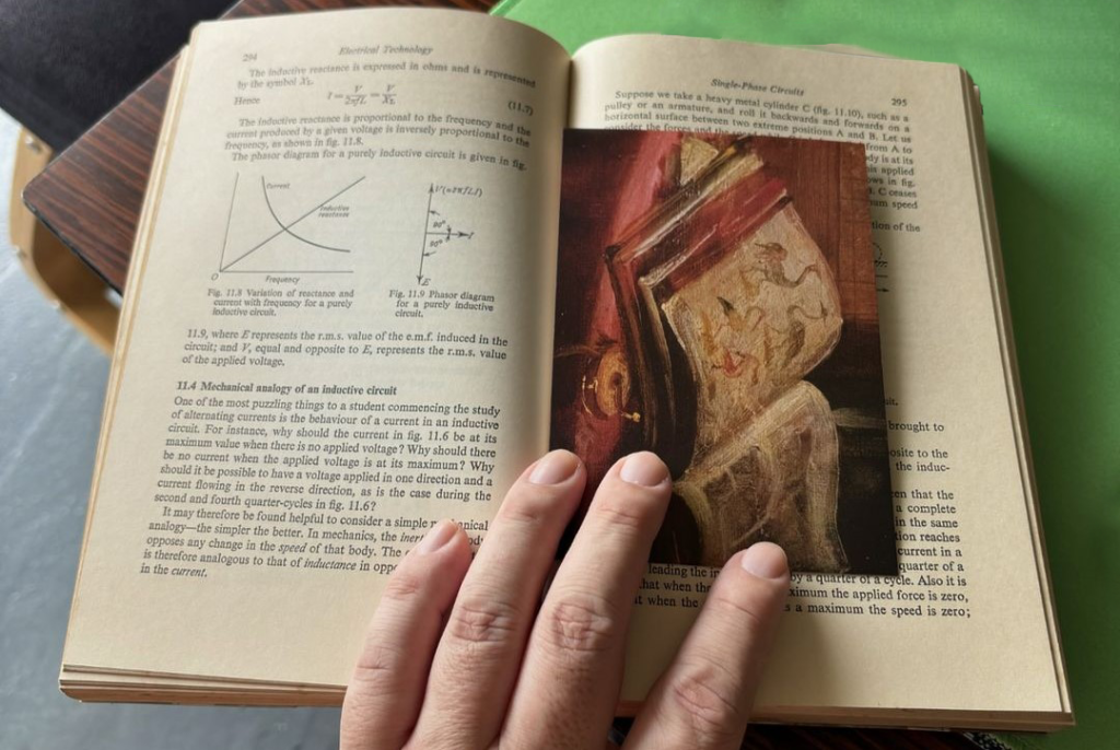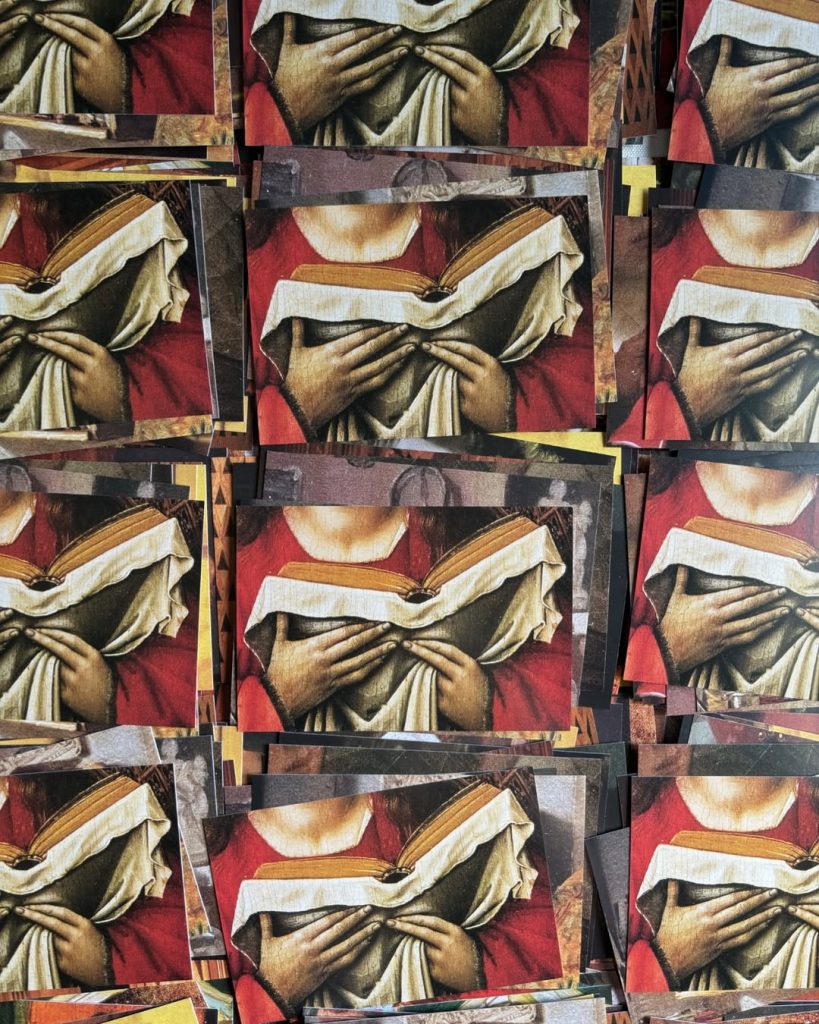 For as long as he can remember being an artist, Chong has been drawn to the presence of books, libraries, and writings in paintings. In Oleanders, the artist wandered around the Metropolitan Museum of Art in New York and captured one hundred six close-up images of paintings with books in them. The artist then turned these cropped images of books into postcards, stashing five thousand of them in books at the Sunday Book Bazaar in Lahore, for bibliophiles to find while browsing. The image library of books is also on view as a video at the Pak Tea House, a fabled hotbed of the literary history of South Asia.