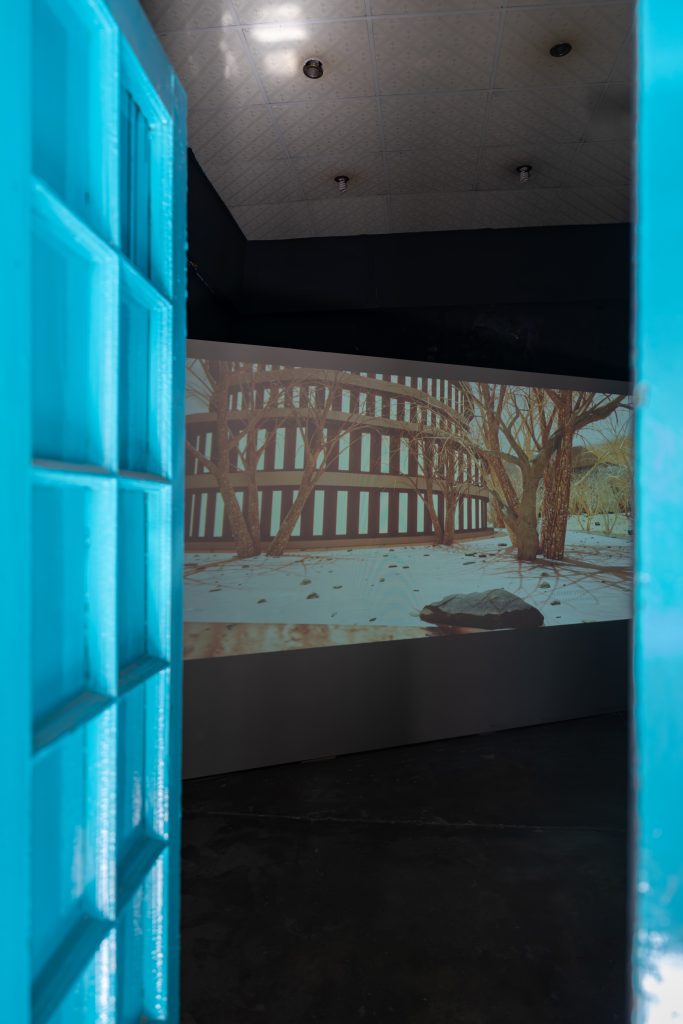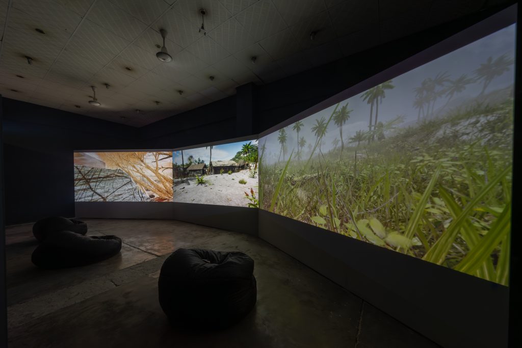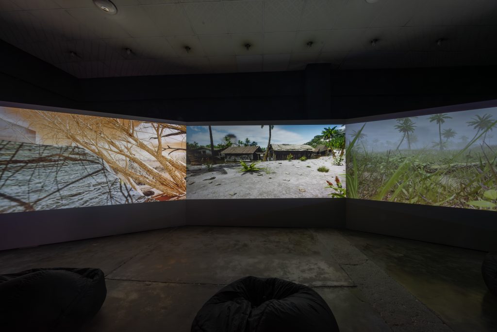Promised Land is a three-channel interactive video game project that unfolds the narrative of the European history of colonialism by addressing the notion of land and landscape and how it is expropriated, exploited, and romanticized in both digital and material worlds. The work is a kind of film in which the player’s navigation determines the storyline, and allows the visitor to wander through hypnotic and immersive landscapes meticulously designed and drawn by the artist with different computer programs. The artist painstakingly constructs these landscapes with reference to colonial film footage in the collection of EYE Film Museum, Amsterdam.