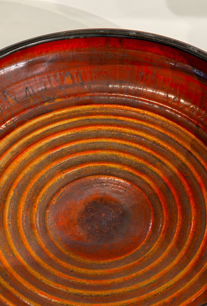 One of Pakistan’s earliest and most distinguished ceramic artists, Alam brought the world to Lahore through her exploration of different traditions of working with clay from across different parts of Asia and Europe.  Among them was the deep history of the Indus Valley itself: Alam traced her own practice to Muhammad Nawaz, the kumhar master potter of Harappan lineage whom she met in 2006 and learned from, and who became her Ustaad. But Alam also understood her practice in cosmic terms.  As she recounted, “My whole body moves when I’m passing a pot. The clay in my body, in my being, responds to the clay outside.” She envisioned her practice as more than art; it offered a sort of communion:  “It is the earth which speaks to us and explains everything to us, and it is through this process that I have learnt everything in life.”