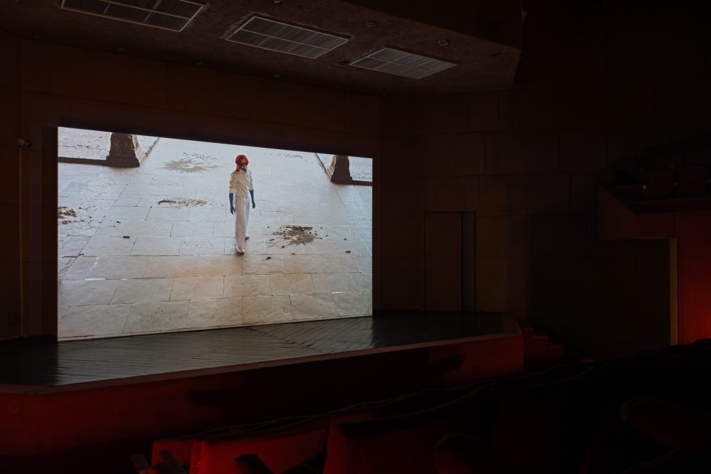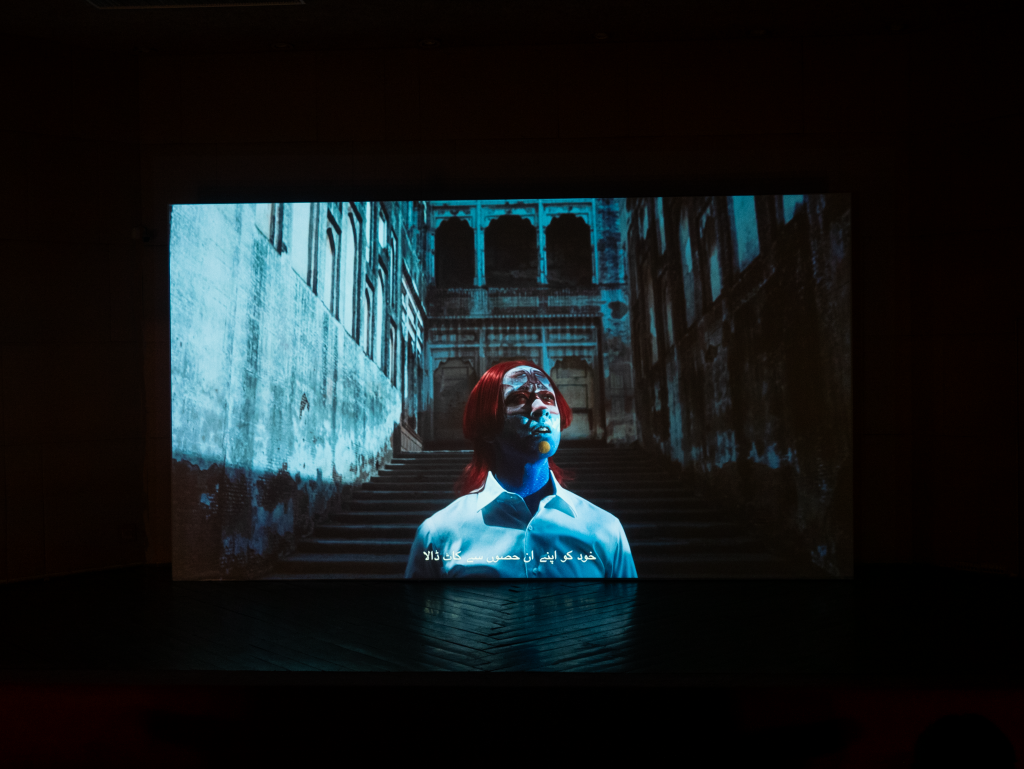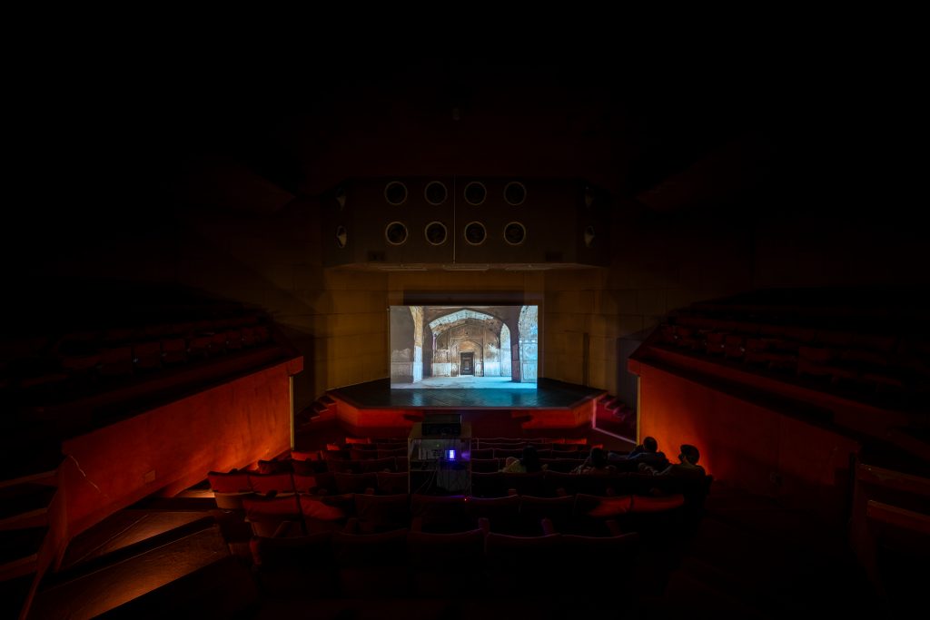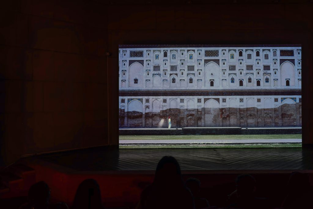 The Fortress presents, then slowly takes apart, supposedly archetypal “Man,” the universal Enlightenment subject that justified Western colonialism, and continues to justify the exploitation of natural resources.  As first encountered at Alfalah Theatre, the subject, as embodied by the character Wai King, rehearses and performatively constructs his position of superiority and othering. Transported to Lahore Fort, the subject meets his own ghost and the remnants of his own past narratives, layered one atop the other. There, he witnesses the shifting paradigms of history and realizes the entanglement and inseparability of being with the world around him. The video explores themes of identity, power, and knowledge–critiquing Western notions of universality and the Enlightenment privileging of reason and individualism. Drawing inspiration from Eastern philosophies, particularly Sufi thought, the film examines the fragmented nature of human existence and critiques the notion of a singular, homogenized human experience.  The work takes its title in part from a section of the Mathnawi by the Sufi poet Rūmī: