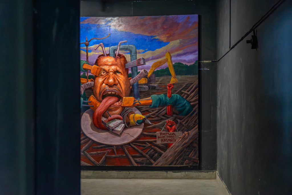Udeido Collective was established in Yogyakarta in 2018 as a platform for young artists from across Papua to spearhead an artistic movement within their homeland. Taking their name from the ude leaf used on the island to treat wounds, Udeido aims to heal and reconstruct the collective memory of the Papuan people. Members include Betty Adii, Michael Yan Devis, Yanto Gombo, Nelson Natkime, Constantinus Ruharusun, Andre Takimai, and Dicky Takndare, all from Indonesia’s easternmost region. They have been featured at the Jogja Biennale (2021) and the Biennale of Sydney (2024).
