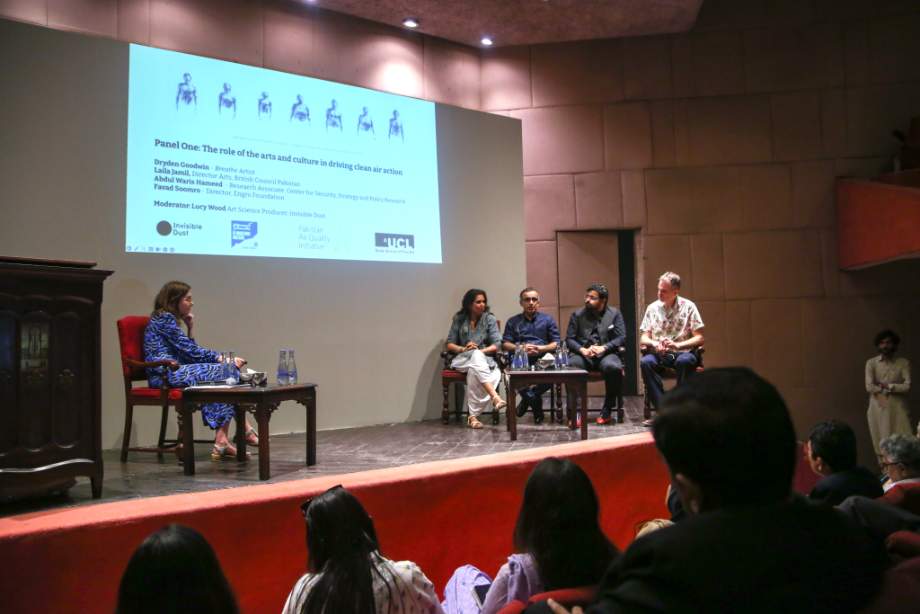 The Breathe: Lahore Knowledge Exchange Symposium accompanied the launch of Dryden Goodwin’s Breathe: Lahore on sites across the city of Lahore at the Alhamra Arts Centre, in partnership with Invisible Dust and Pakistan Air Quality Initiative. Supported by UCL and featuring figures from across arts, research, policy, law, campaigning and business in Pakistan, including some key voices from the UK, this event explored the potential of the arts and cross-sector working in driving action on air pollution in Lahore and beyond – and sought to share vital knowledge and learnings between London and Lahore; the global north and the global south.