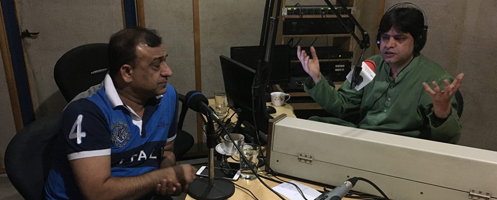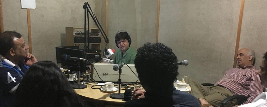 TalkApart from the actual places and spaces in a city, the ‘space’ of the television or the radio is also a powerful ‘public space’, and can easily aid in the dispersal of ideas and information. With this in mind, the second artSPEAK format was unconventional: a live radio show on Mast FM 103, a leading radio channel in Pakistan that reaches out to four cities – Faisalabad, Karachi, Lahore and Multan.